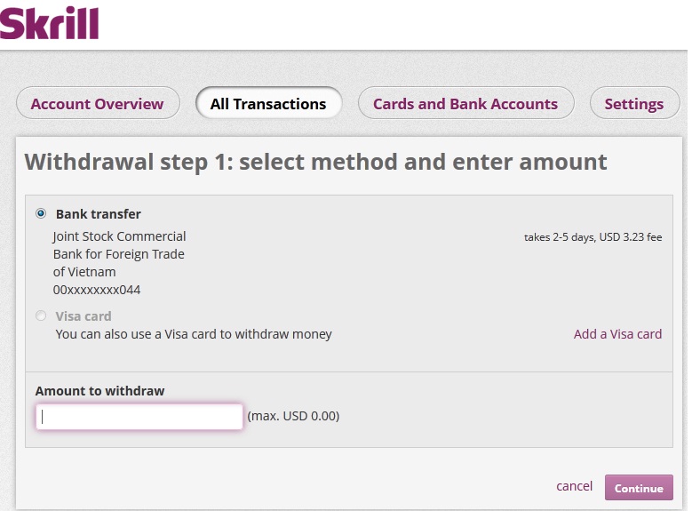 Rút tiền từ skrill (moneybookers) về ngân hàng Việt Nam.